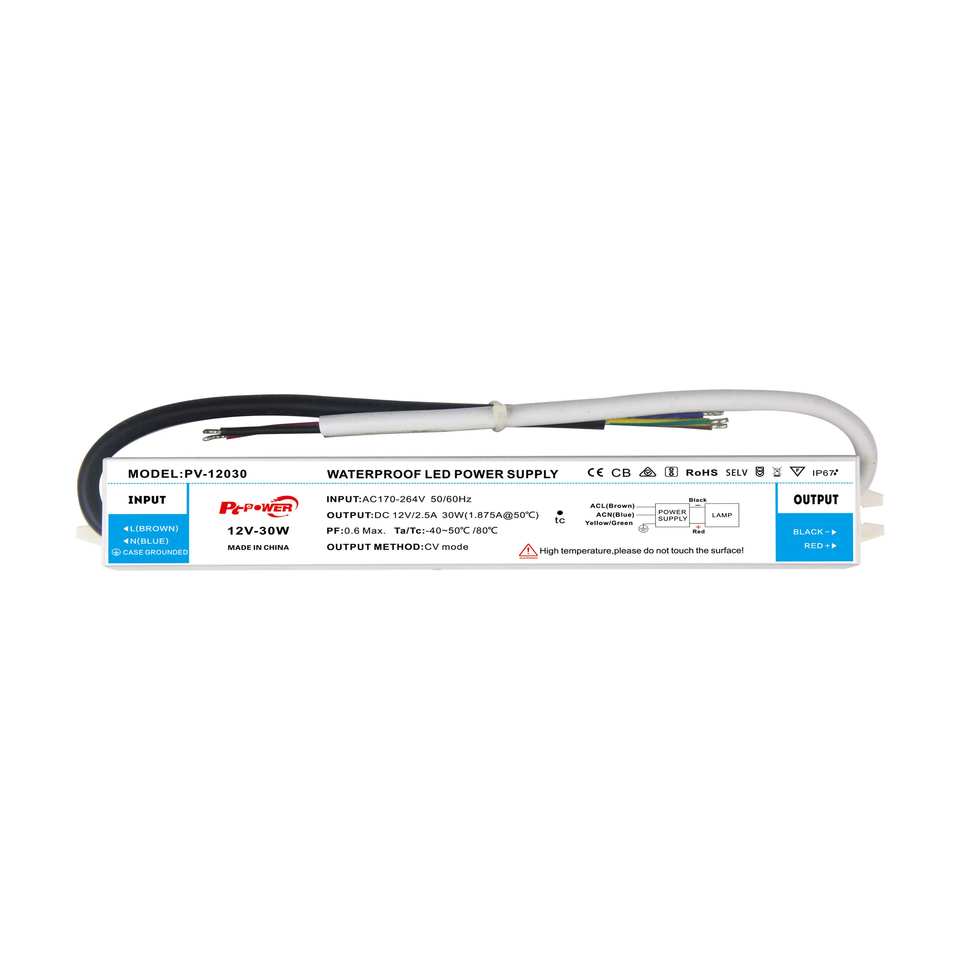 Fuente de Alimentación LED de 30W con Voltaje Constante, Impermeable IP67, para Exteriores, Controlador de Tiras LED EMC, 170-264V AC-DC 12V 24V, Caja de Control para Iluminación