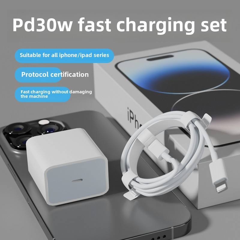 Juego de cargador eléctrico rápido de 30W para teléfono móvil Apple 14/13 8 y cables de datos PD 20W Cable de carga rápida