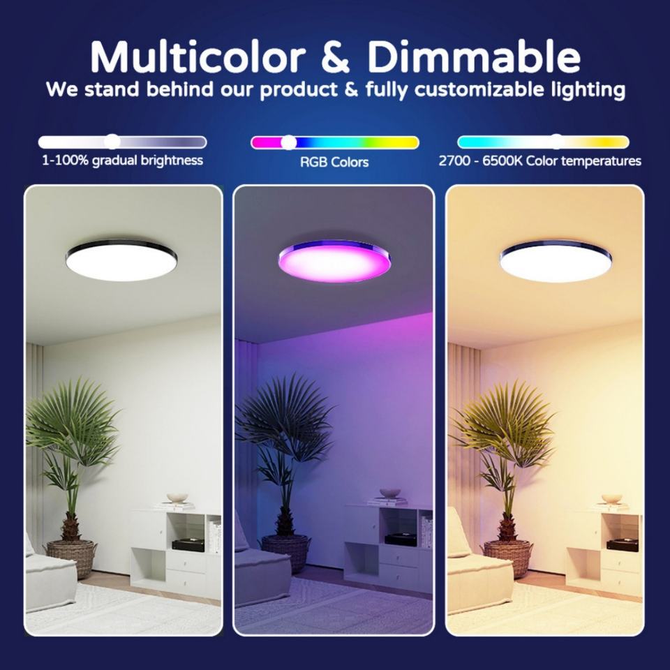 Lámpara de Techo Ultrafina de 30W con RGBWC, WiFi Inteligente y Control Remoto