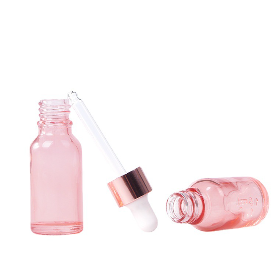 30ml 50ml botella de esencia facial cosmética de vidrio de Color Rosa personalizada botella de cuentagotas de aceite esencial de cabello de lujo vacía personalizada