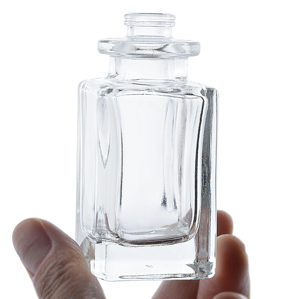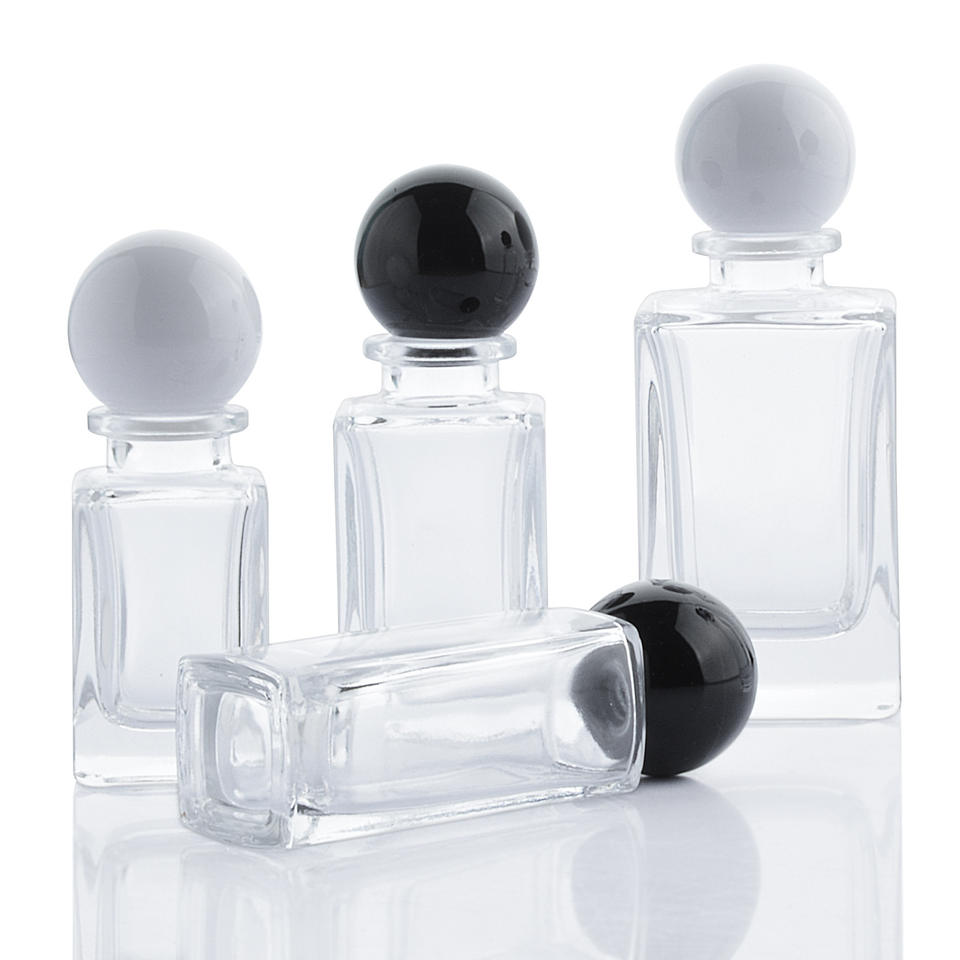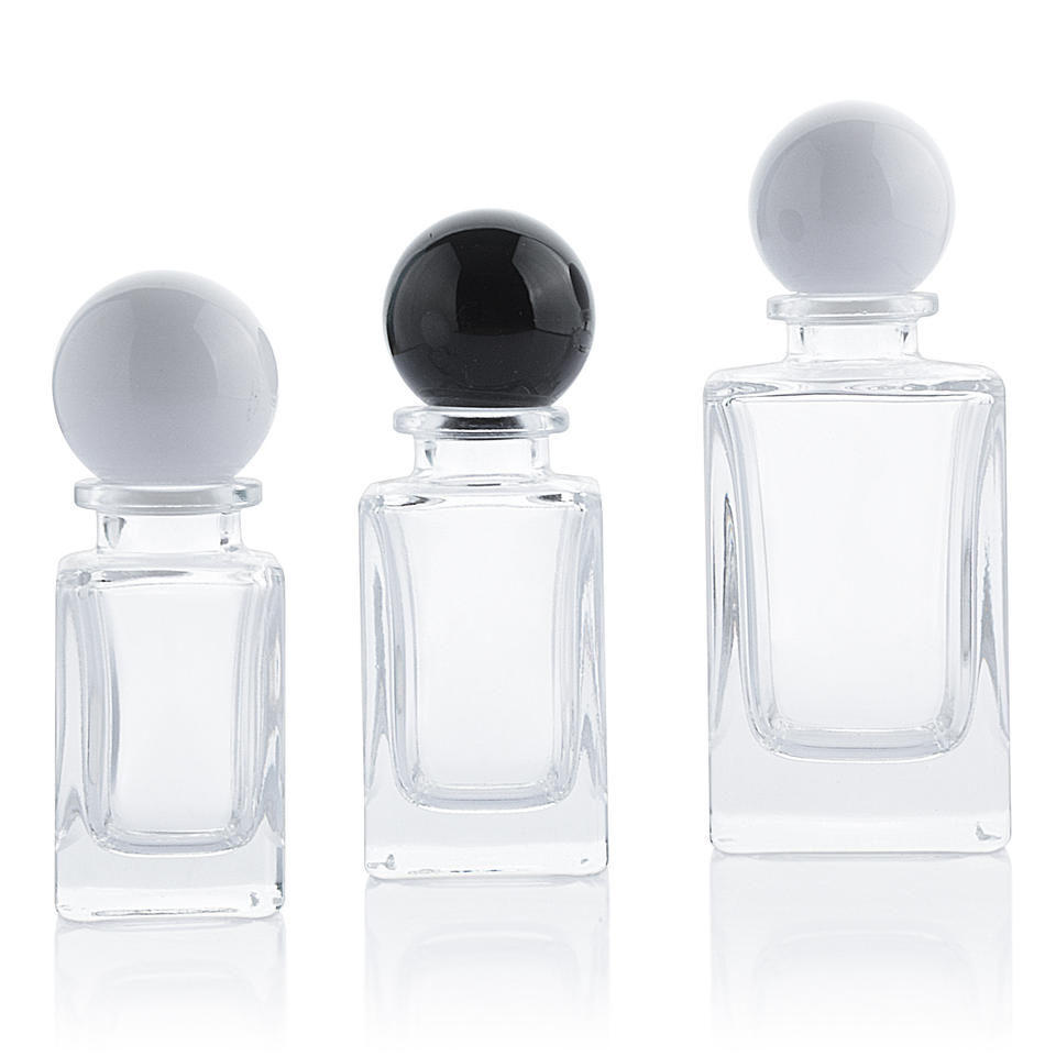 Botella de perfume de vidrio transparente cuadrada de 30ml con tapa de bola redonda, botella de spray corporal engrosada de 50ml con escalón