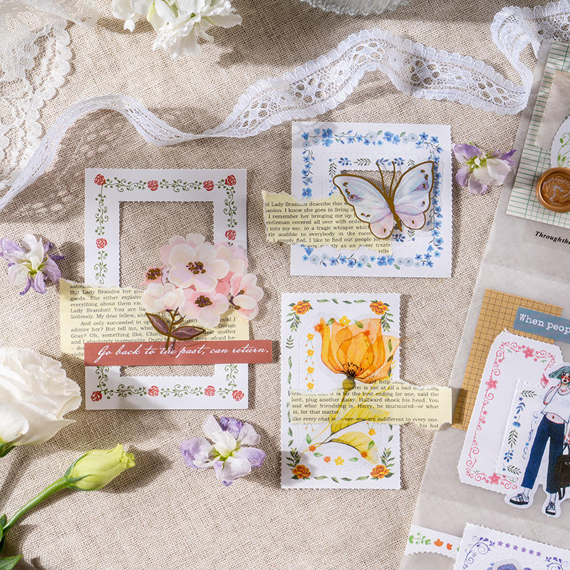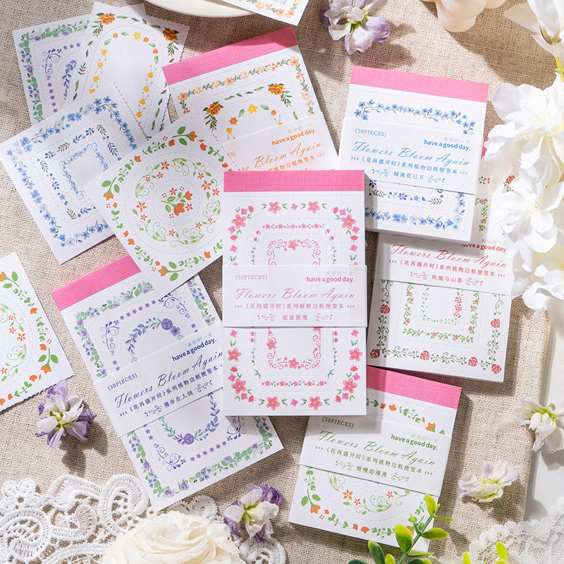 Paquete de 30 piezas: Bloc de notas con marco, Serie Flores al Renacer, Diario de plantas, Hojas sueltas, Base para collage troquelada, 6 modelos