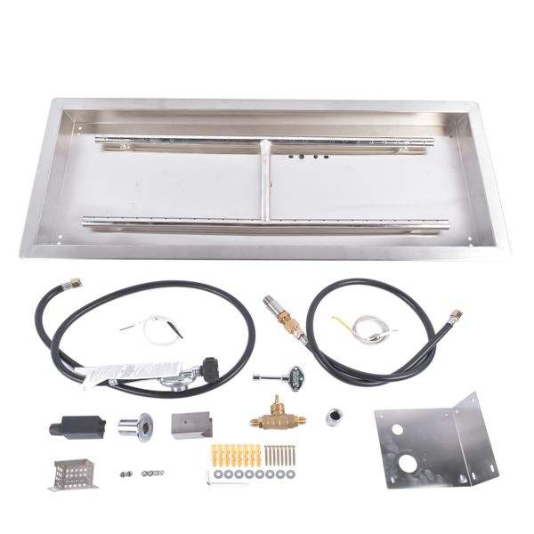 Kit de quemador para brasero de acero inoxidable de 30x10 pulgadas, braseros rectangulares para interiores/exteriores