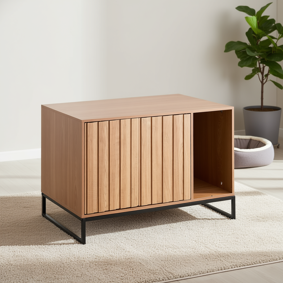 Mueble para Arenero de Gatos, 31.5 Pulgadas, Impermeable, de Bambú, con Almacenamiento, Diseño Rectangular