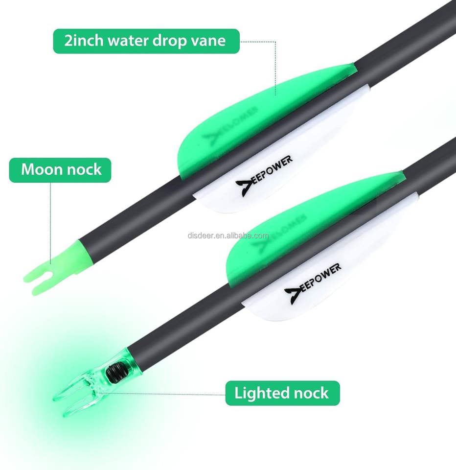Juego de flechas de carbono de 31 pulgadas con puntas mecánicas y tomas luminosas, flechas de caza para arco compuesto y arco recurvo OEM