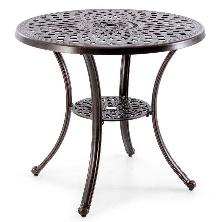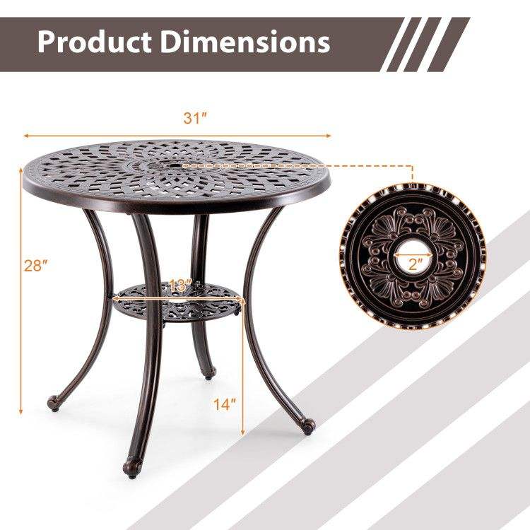 Mesa Redonda de Aluminio Fundido para Patio de 31 Pulgadas de Diámetro con Orificio para Sombrilla, Mesas para Exteriores