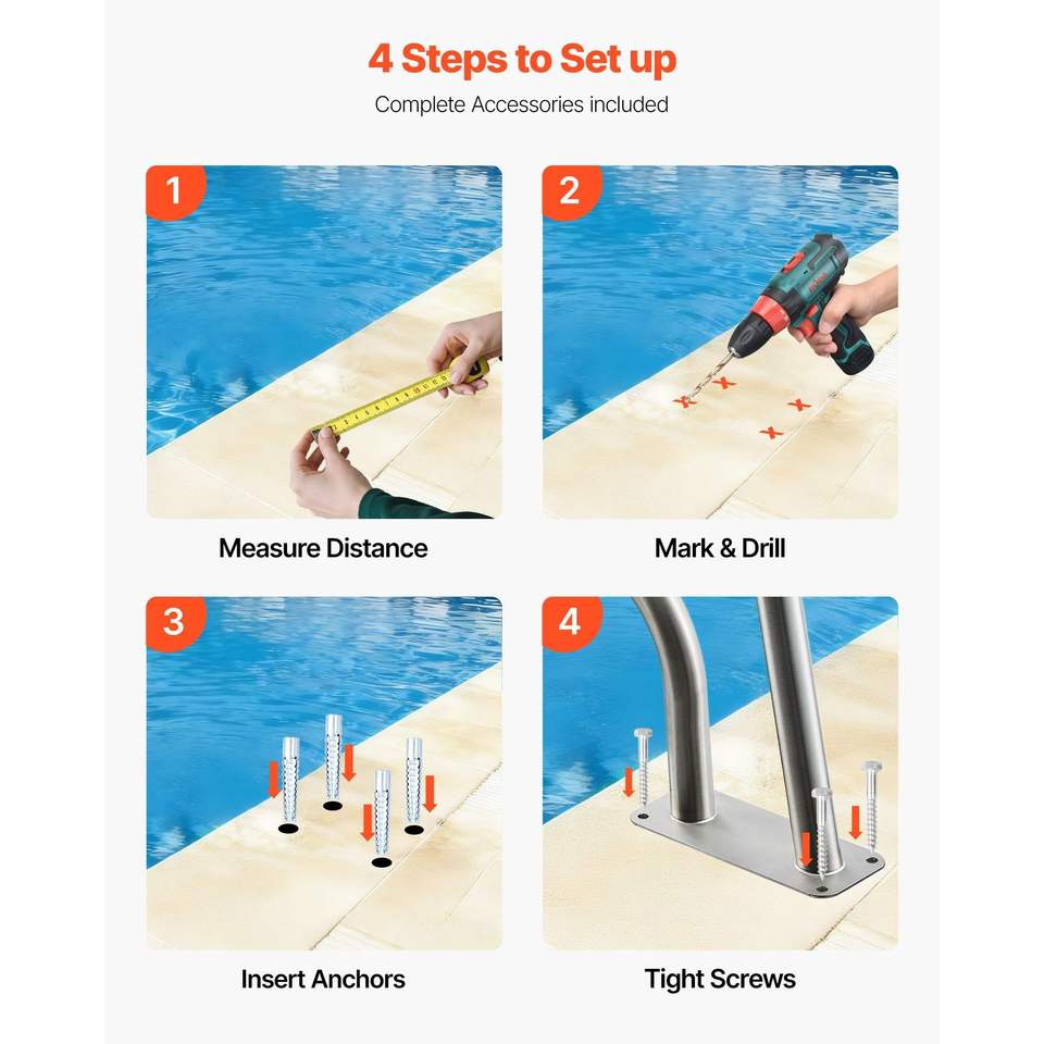 Pasamanos para Piscina de Acero Inoxidable 304 de Alta Resistencia, 31 x 22 Pulgadas, Capacidad de Carga de 220 Libras, Desmontable, con Funda Antideslizante, Dispositivo de Ayuda