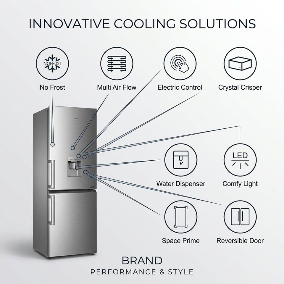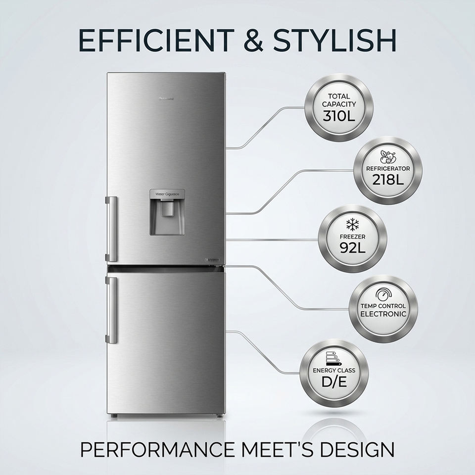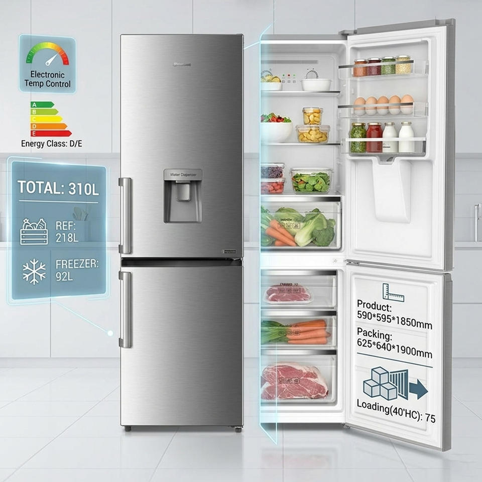 Refrigerador con Congelador Inferior de Gran Capacidad, 310L, Sin Escarcha, Control Electrónico, Puerta Reversible, Iluminación Cómoda, para Uso Doméstico