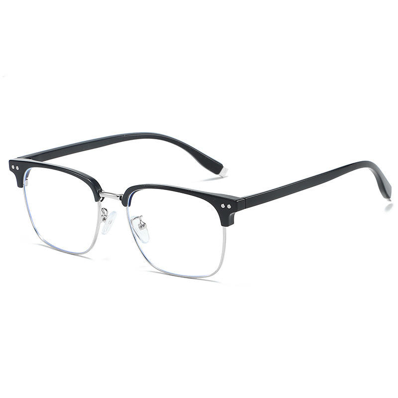 31132 Montura de Gafas Rectangulares de Media Montura para Hombre, Lentes de PC con Protección Anti-Radiación y Luz Azul, Antireflejantes, para Visión de Cerca