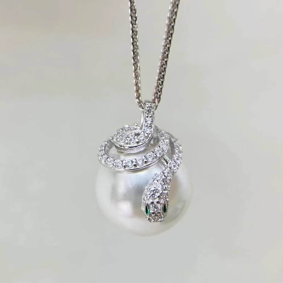 31248DIY Accesorios de Perlas, Colgante de Plata S925 con Cuentas Redondas de 11-13 mm para Mujer, Colgante de Moda con Diseño de Gorro de Navidad Vacío