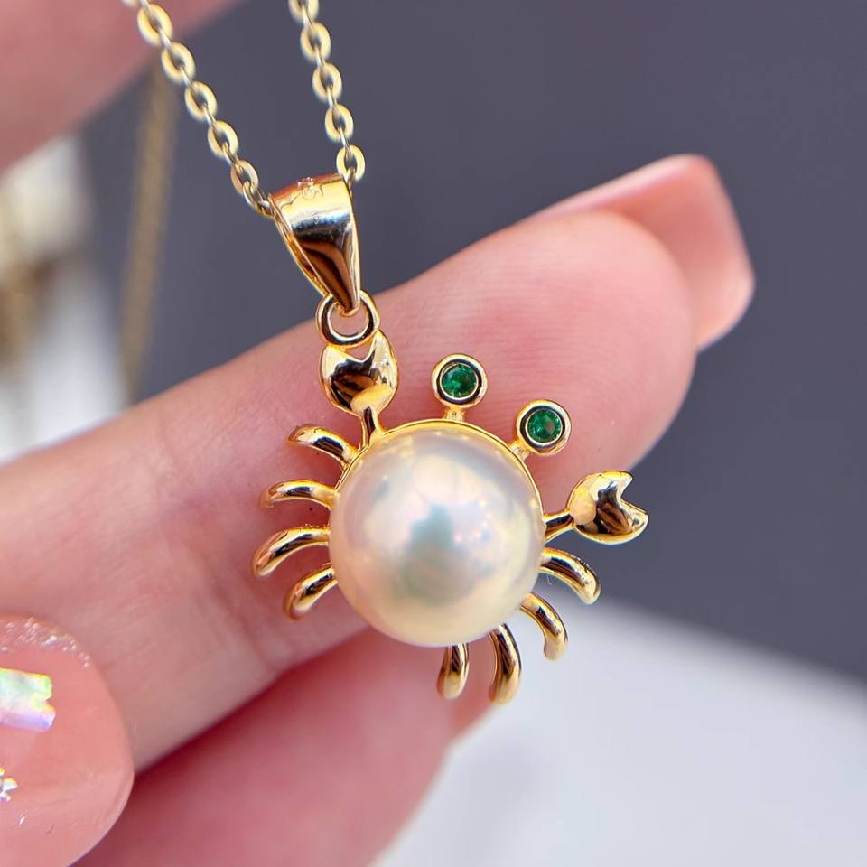 Colgante de Plata S925 31262 con Cuentas Redondas de 8-10 mm, Lindo Collar de Cangrejo y Base Vacía para DIY, Accesorios de Perlas, Joyería de Alta Calidad