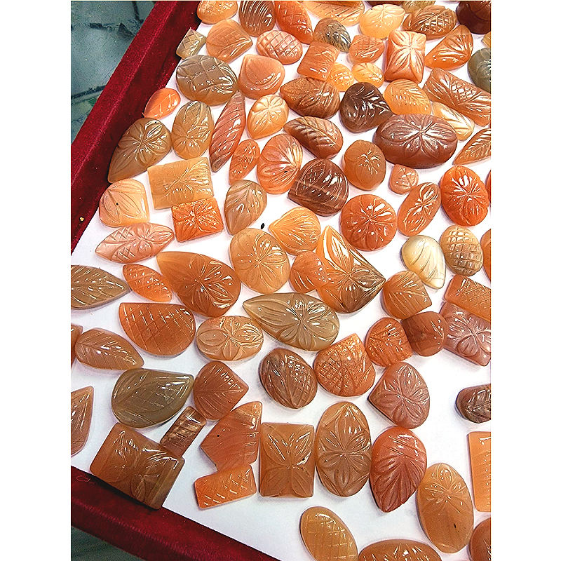 Palabra clave:Hoja de piedra de luna de melocotón natural, hojas talladas Piedra de Luna piedra preciosa suelta