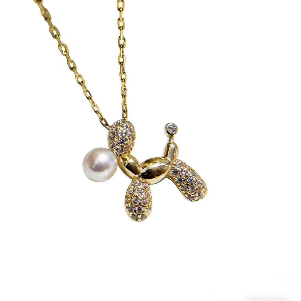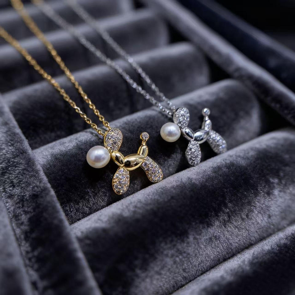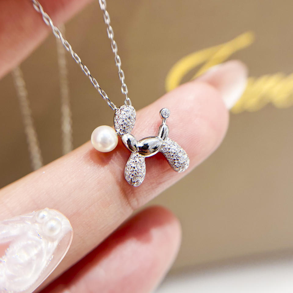 Accesorios de Perlas 31478DIY, Colgante de Plata S925 con Cuentas Redondas de 4-6 mm, Base Vacía para Colgante de Perro en Oro/Plata