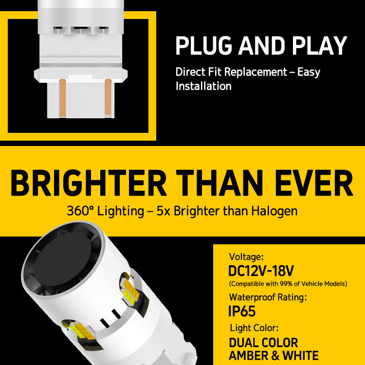 Bombilla LED 3157 de Doble Color con Función Switchback, 28W, Ventilador Integrado, Resistencia, Sin Errores Canbus, 7443 4257, Luz de Señal de Giro, DRL, Luz de Estacionamiento