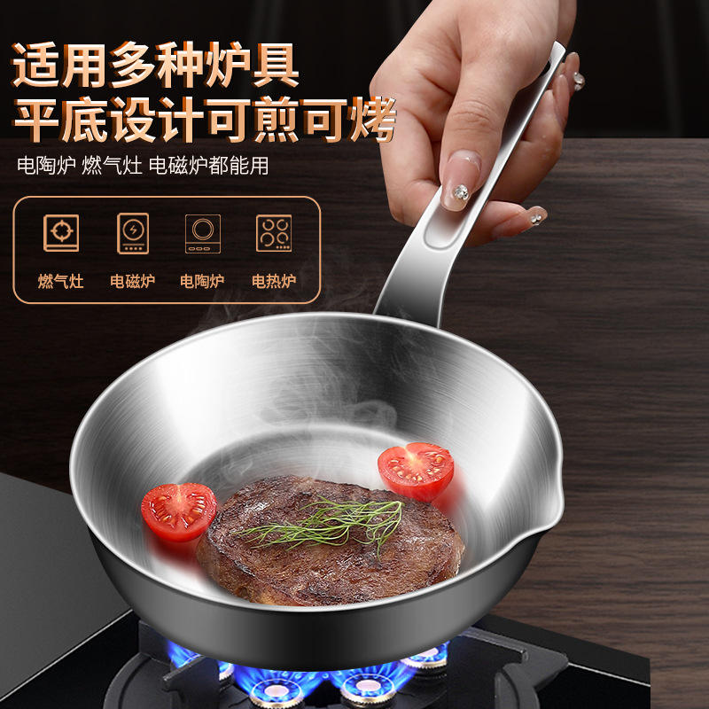 Sartén de acero inoxidable 316 con base multicapa redonda antiadherente para cocinar en estufas de gas y eléctricas con boquilla.