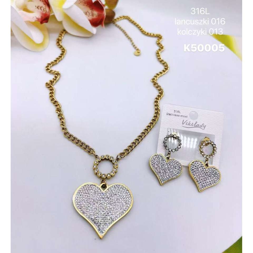 VIKILADY-Conjunto de collar y aretes de acero chapado en oro 316L, joyería fina de circón con incrustaciones de diamantes para fiestas, venta al por mayor