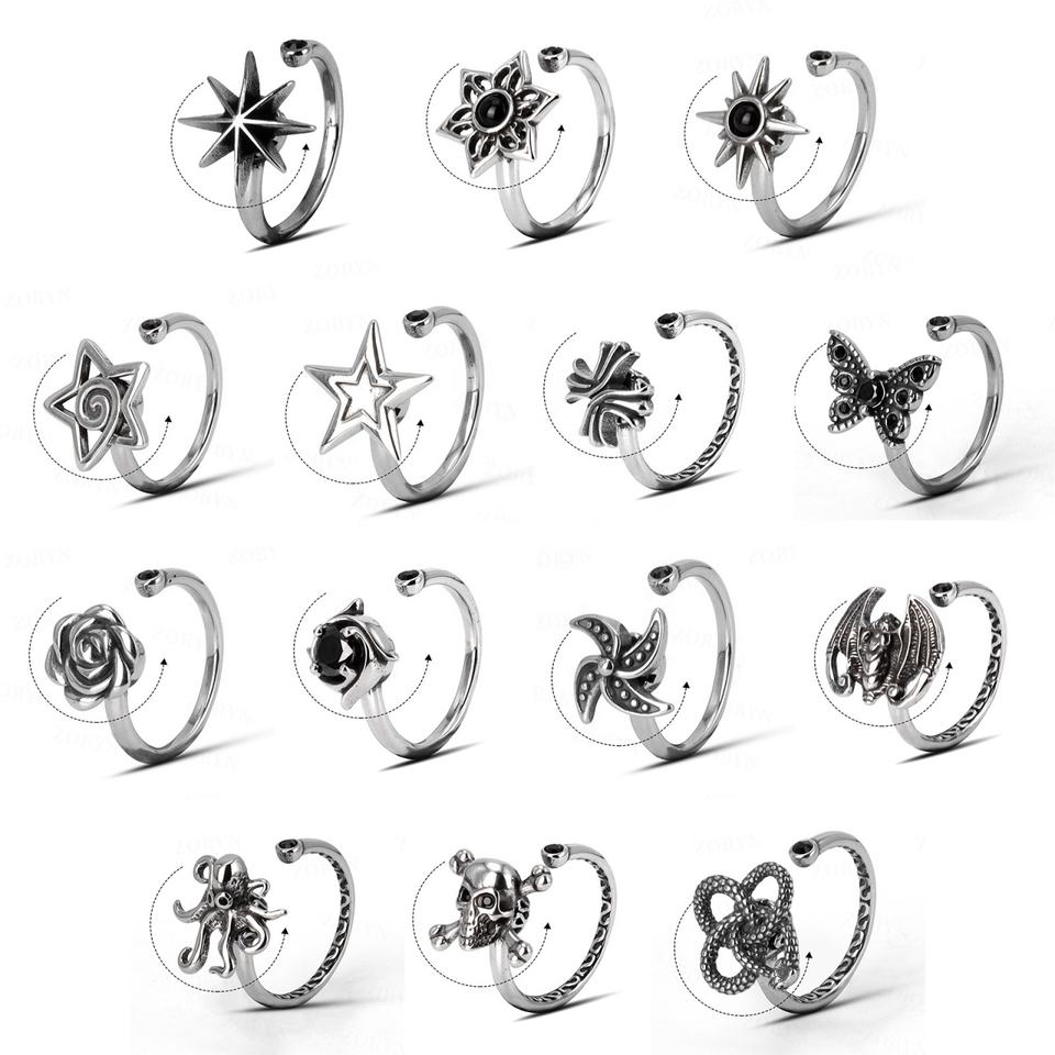 Anillos Antiestrés de Acero Inoxidable 316L con Diseño de Serpiente, Estilo Vintage Oscuro, Adorno de Piedras Preciosas, Ajustables para Hombres y Mujeres, Joyería de Uso Diario