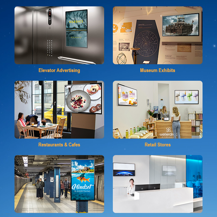 Publicidad publicar, Tienda de venta al por menor, Centro Comercial, Pantalla de platos, Bienvenido de la pantalla, -Servicio de negocios, Sala de exposición, Señalización, Aeropuerto, Metro, Ascensor, Hotel y restaurante suministros, Educación, Tratamiento médico