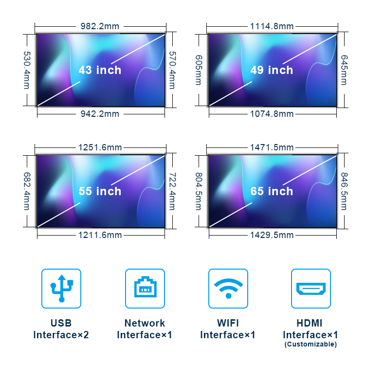 Pantallas LCD de Señalización Digital de 32 43 49 55 65 Pulgadas 4k para Montaje en Pared Interior, Pantallas de Video Publicitarias, Menús Digitales para Tiendas Minoristas