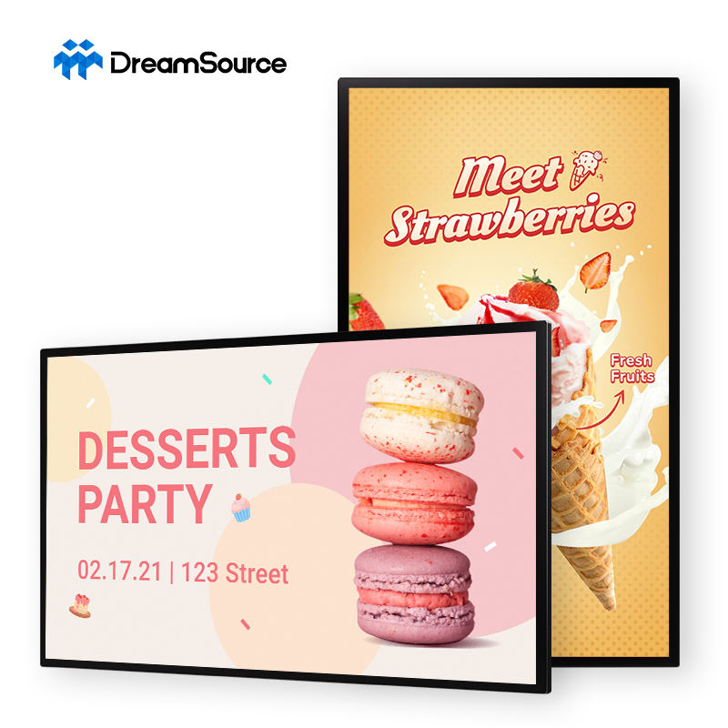 Pantalla Digital Comercial Ultrafina de 32 y 43 Pulgadas con Carcasa Metálica Resistente, Pantalla Publicitaria para Espacios Públicos en Interiores