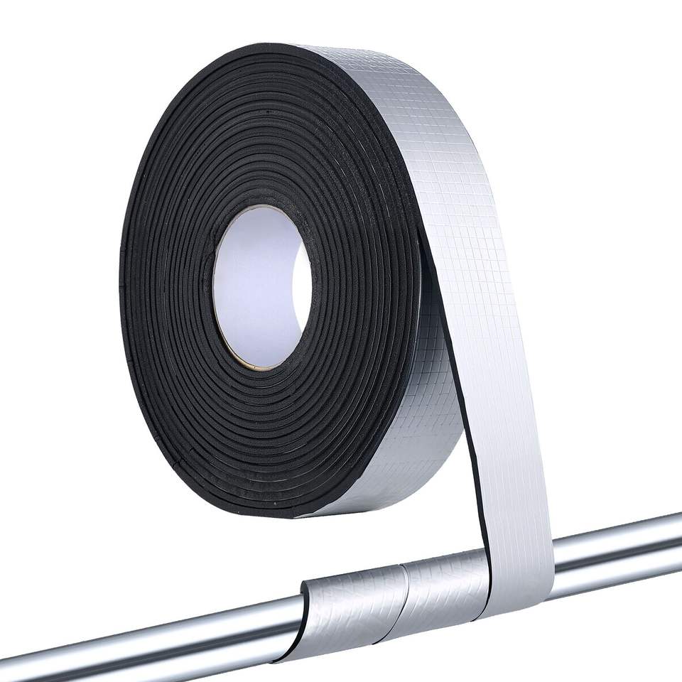 Aislamiento de Espuma Autoadhesiva para Tuberías de 32.8 Pies x 2 Pulgadas, Rollo de Aislamiento Térmico con Capa de Aluminio para Tuberías