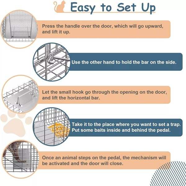 Jaula de Acero Resistente de 32 Pulgadas para Roedores con Puerta de Hierro, Trampa para Animales Vivos