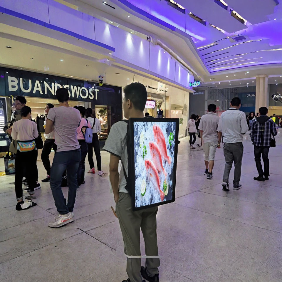 Cartelera digital de 32 pulgadas para caminar, reproductor de publicidad móvil, Panel táctil LCD para mochila de marketing al aire libre, gráficos de texto