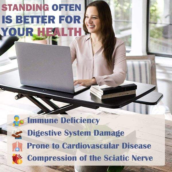 32-Inch Dual Monitor Laptop Workstation Height Adjustable Black Desk Converter with Wide Keyboard Tray for Sit Stand Riser Work