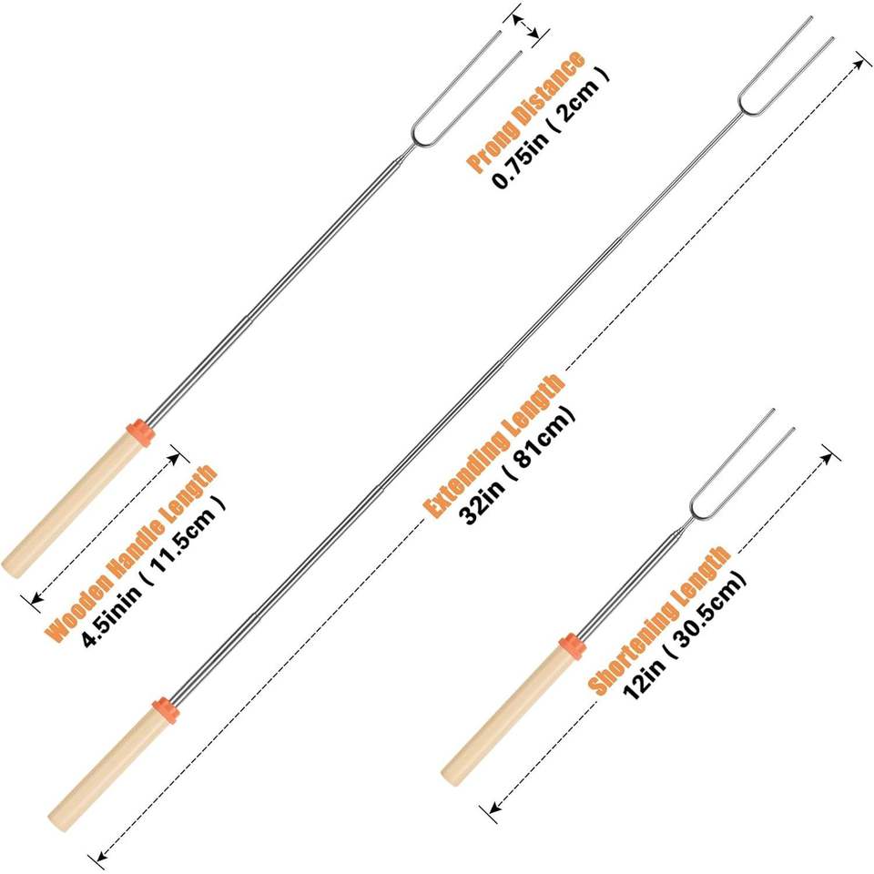Palos Extensibles de 32 Pulgadas para Asar Malvaviscos, Brochetas para Hot Dogs y S'mores para Fogatas, Utensilio Duradero para Acampar