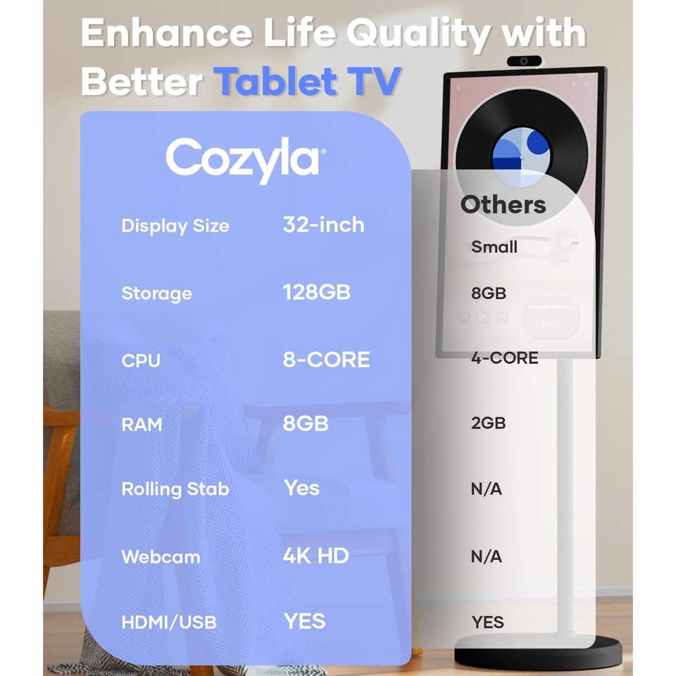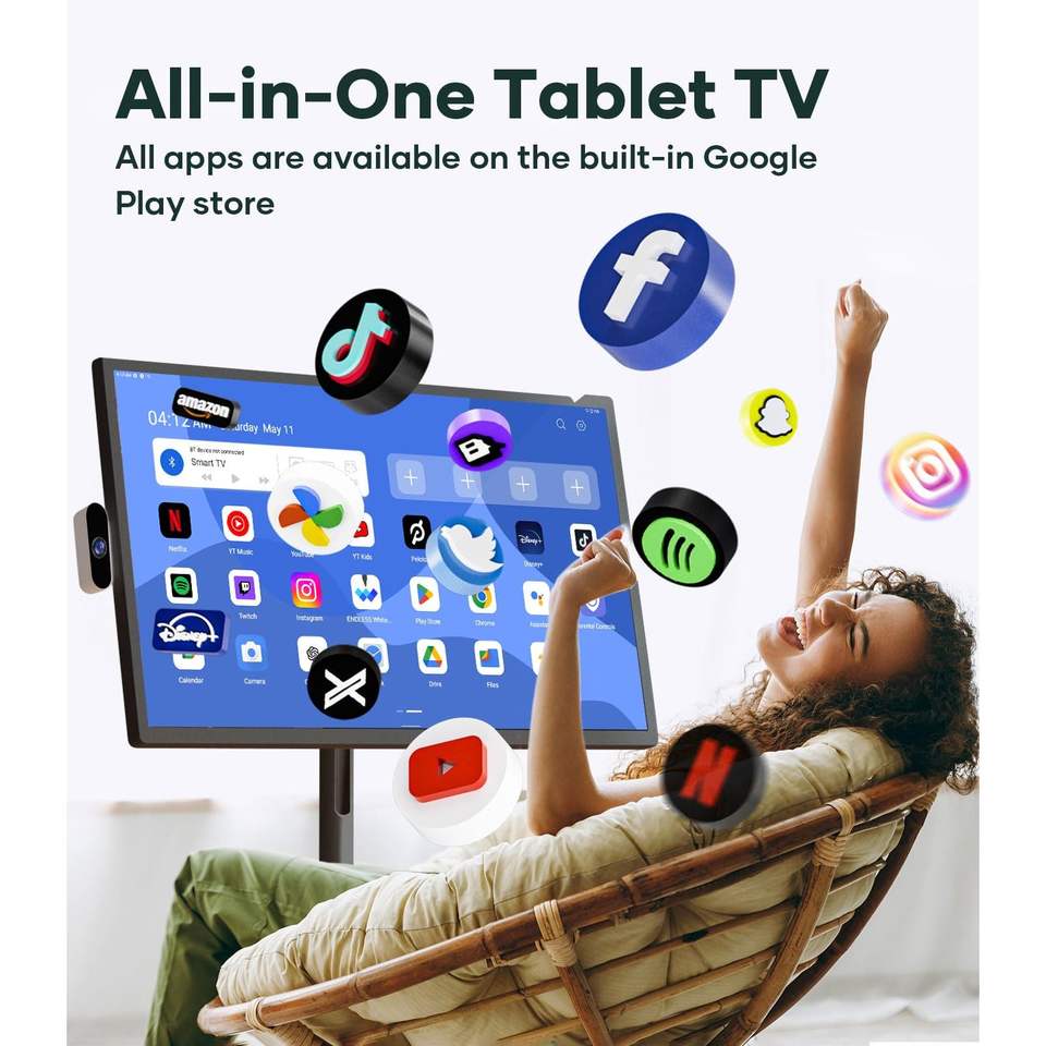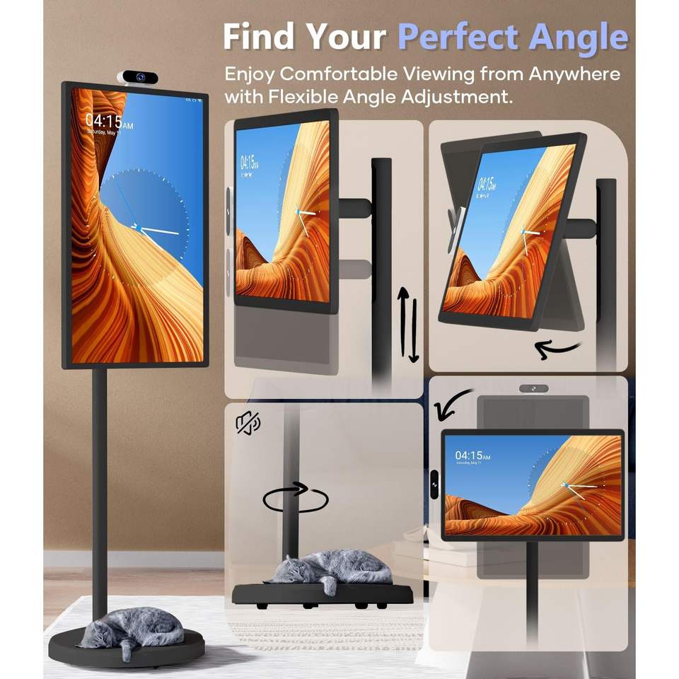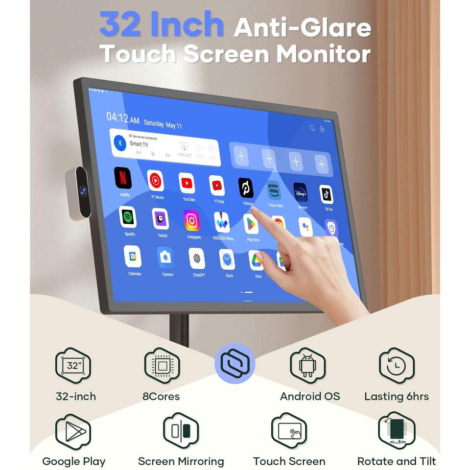 Soporte de TV Inteligente Portátil de 32 Pulgadas con Ruedas Giratorias, Batería Integrada, Pantalla Táctil y Acceso Móvil
