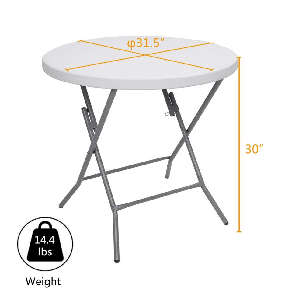 Mesa Plegable Redonda Blanca de 32 Pulgadas para Uso en Exteriores, Mesa Plegable Multiusos
