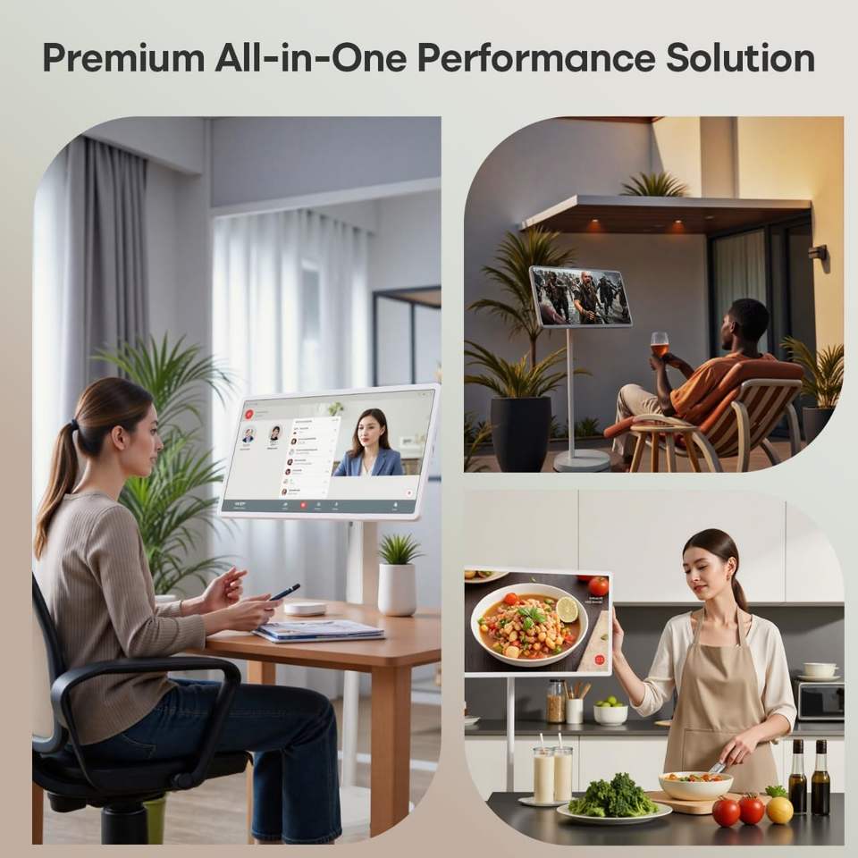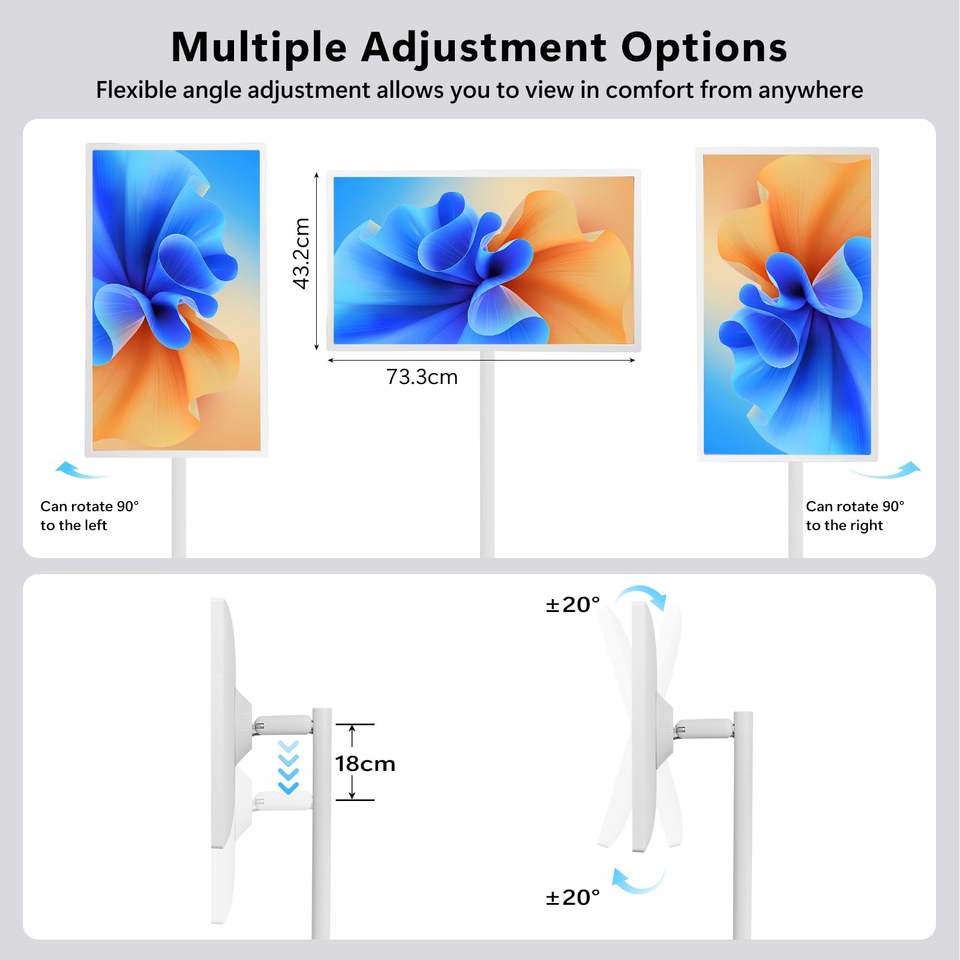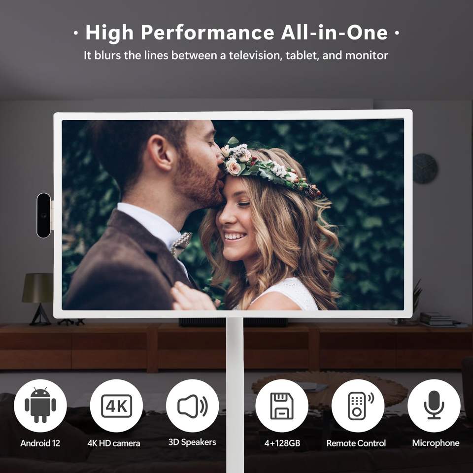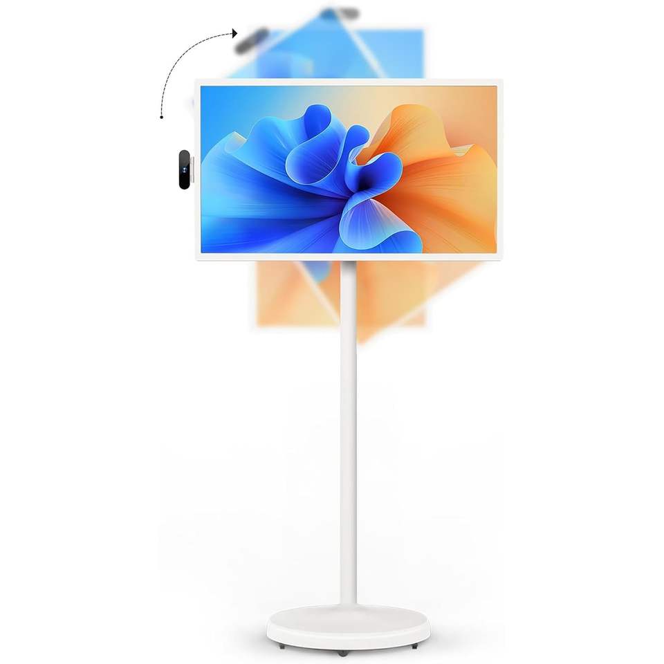 Televisor LED Inteligente Portátil de 32 Pulgadas con Pantalla Táctil Giratoria, Soporte con Ruedas, Batería Integrada, Control Remoto, Cámara, 1080p Full HD