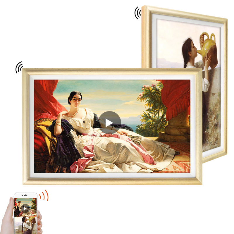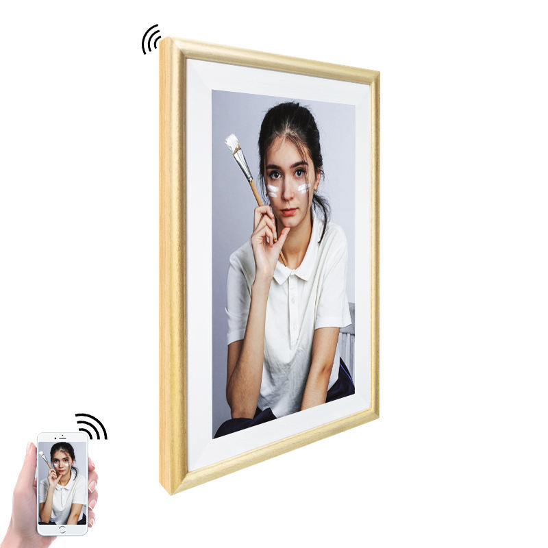 Marco de fotos de madera cuadrado de 32 pulgadas Pantalla táctil Funciones WiFi Marco de fotos digital popular para reproducción de video Formato MP4 MP3