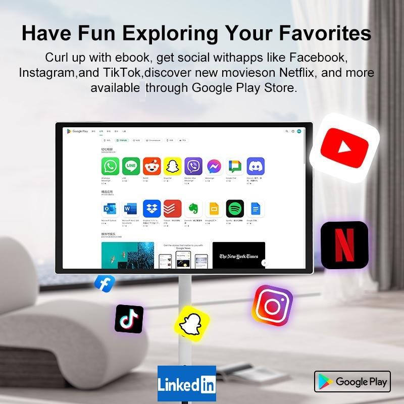 Televisor Tablet de 32 Pulgadas con Pantalla Táctil Inteligente, Sistema Operativo Android, 8 GB + 128 GB de Almacenamiento, Soporte Giratorio para TV, Pantalla Móvil Inteligente LED, Televisor Portátil para Baño
