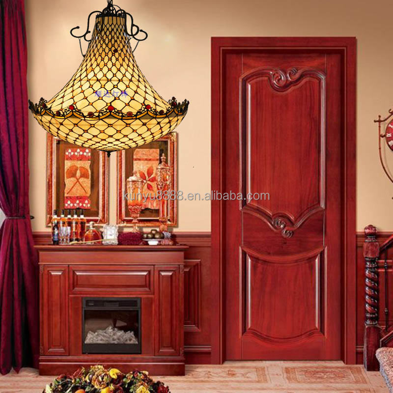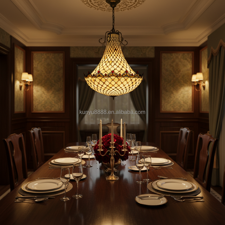 Lámpara Colgante de Vidrio Tiffany de 32 Pulgadas, Hecha a Mano, con Lámina de Cobre, Bombilla de Filamento E27, Luz Blanca Cálida, Elegante, para Villa