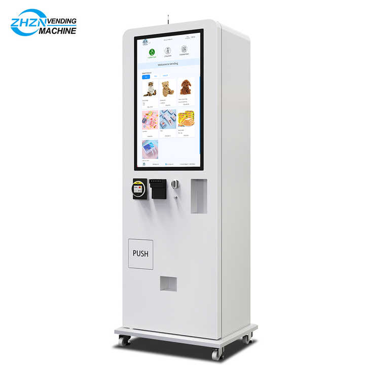 Máquina Expendedora de Acero Móvil Independiente con Pantalla Táctil de 32 Pulgadas para Tarjetas de Crédito, Efectivo, Billetes y Monedas, con Pegatinas Personalizadas y Gestión Remota