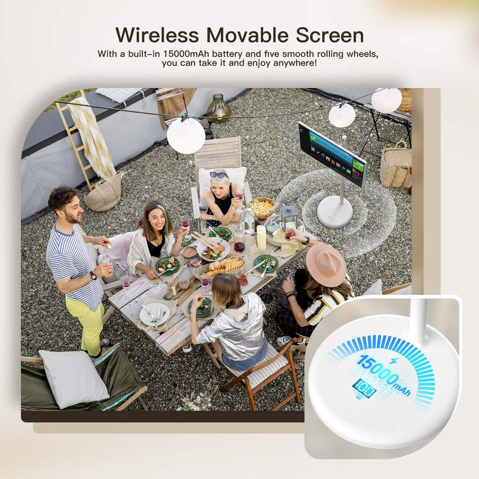 Televisor Portátil con Pantalla Táctil de 32 Pulgadas y Ruedas, 6 GB de RAM, 128 GB de Almacenamiento, Pantalla de 1080P, 8 Horas de Reproducción, Pantalla Integrada