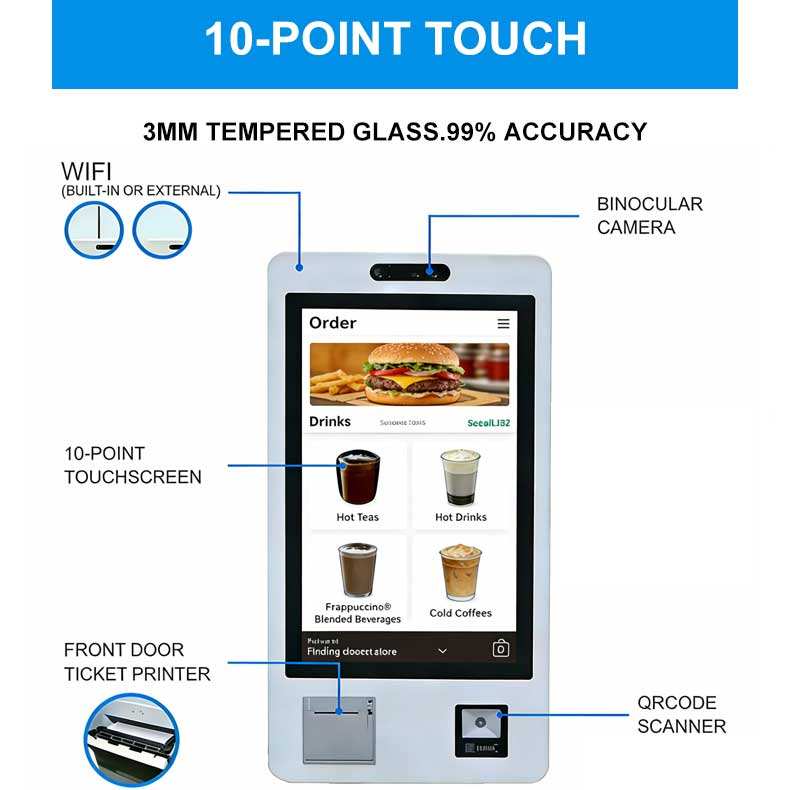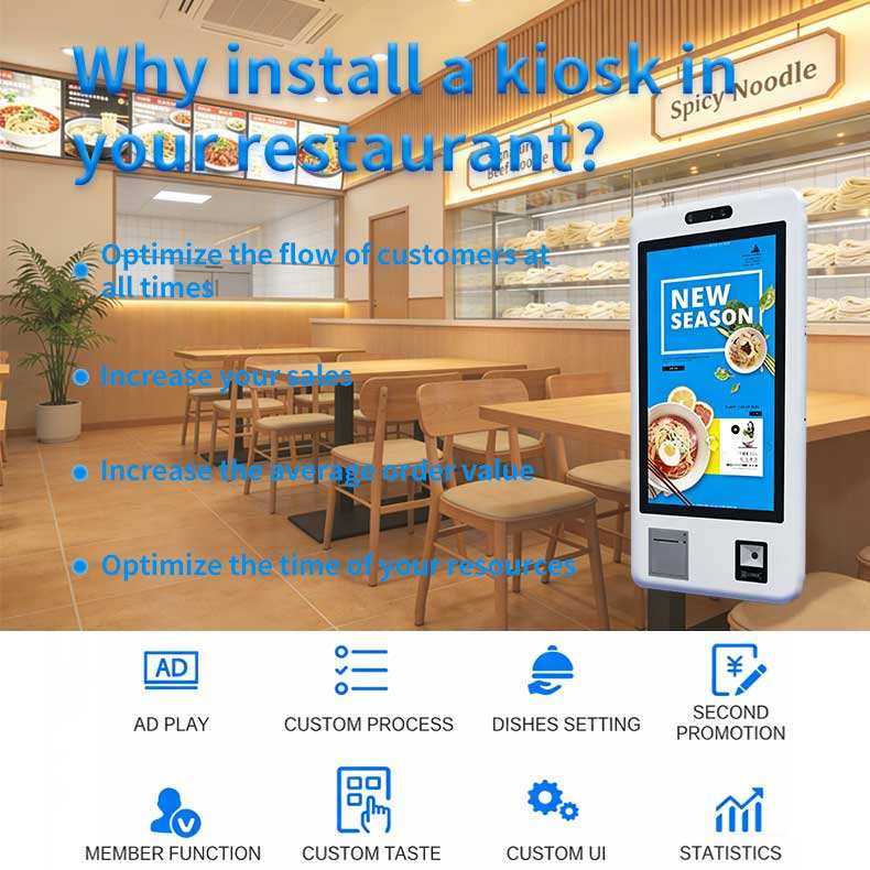 Kiosco expendedero de tickets de estacionamiento para restaurantes de 32 pulgadas con impresora de tickets/lector de tarjetas