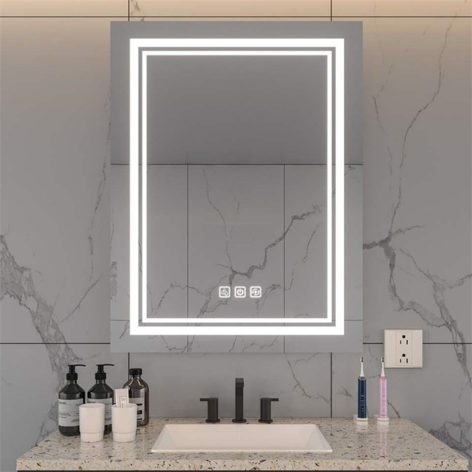 Espejo LED de Baño de 32x24 Pulgadas para Montar en la Pared, Luz Frontal Brillante Full HD, Antivaho de 5 Minutos, 3 Colores Atenuables, No se Puede Enviar