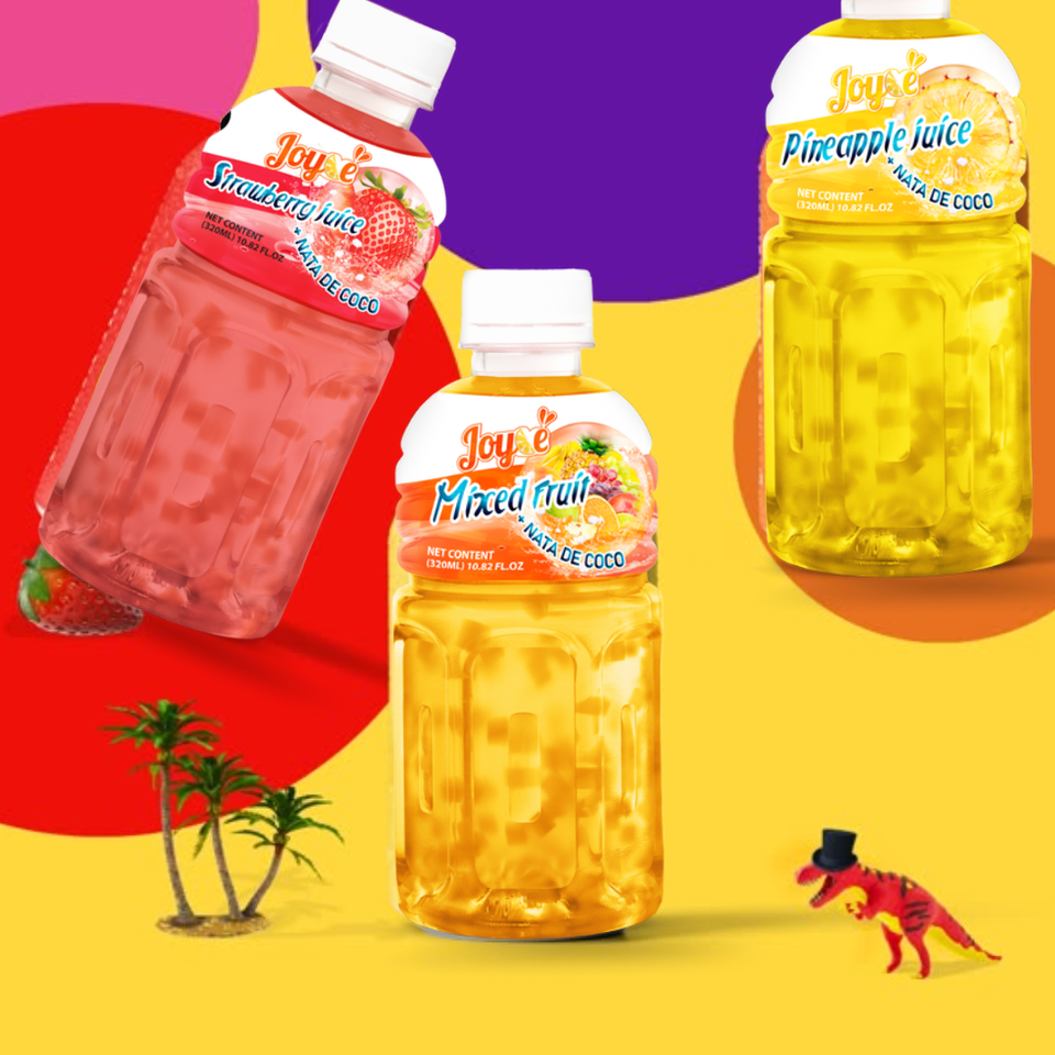 Bebidas Joyce Nata De Coco de 320 ml con Jugo de Fruta Real en Botella PET, Etiqueta de Embalaje OEM ODM, Buen Sabor, Sabores Naturales