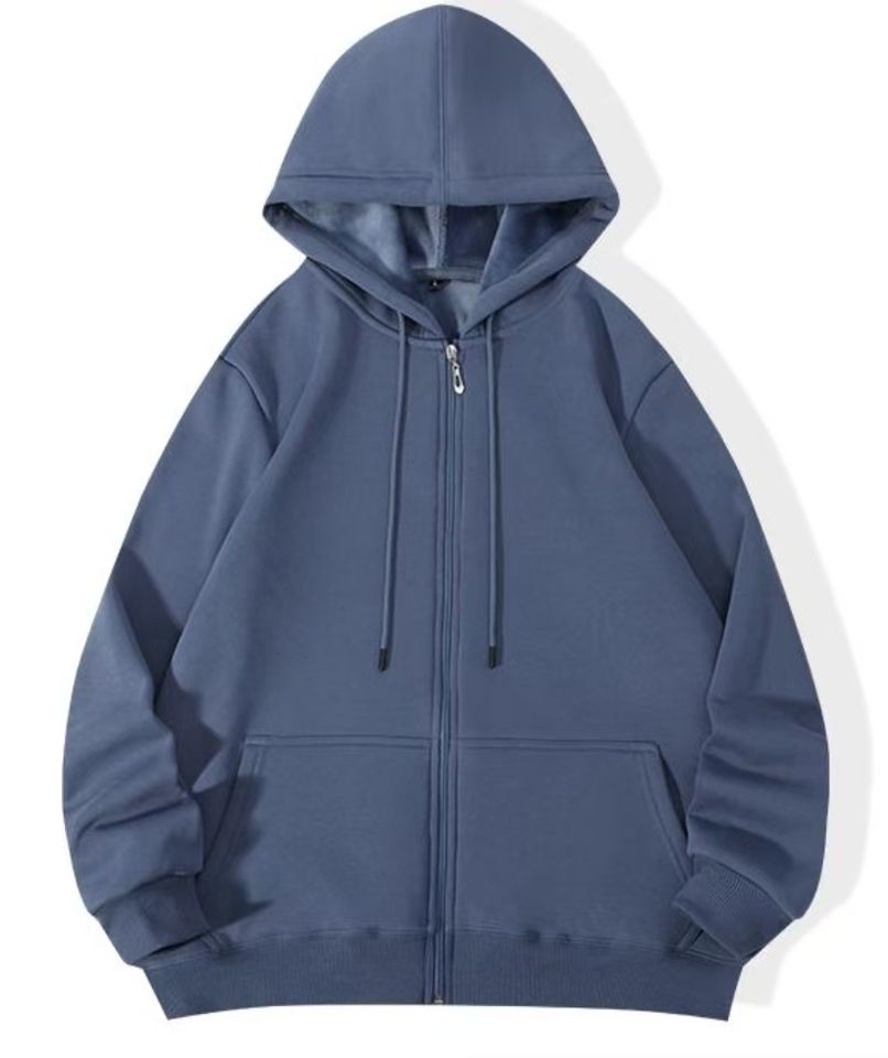 320G Hombres Invierno Sólido Patrón UV Reactivo Bordado Sudadera con capucha Personalizado Impreso Streetwear Chaqueta con cremallera