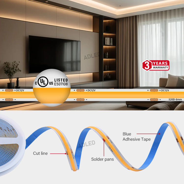 8mm de ancho 320Leds blanco cálido LED COB tira DC12V/24V Control remoto/Wi-Fi IP20 iluminación de paisaje perfil de aluminio