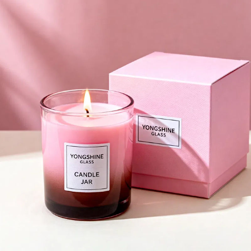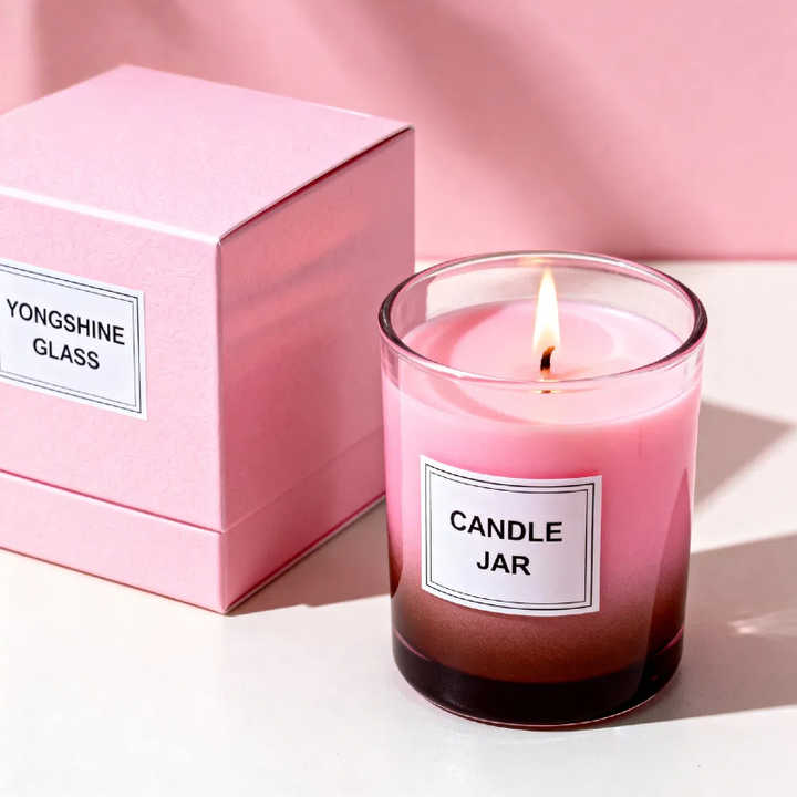 Tarro de vela de cristal de Color degradado 320MLPink, tarro vacío elegante con un hermoso diseño para sostener velas y linternas