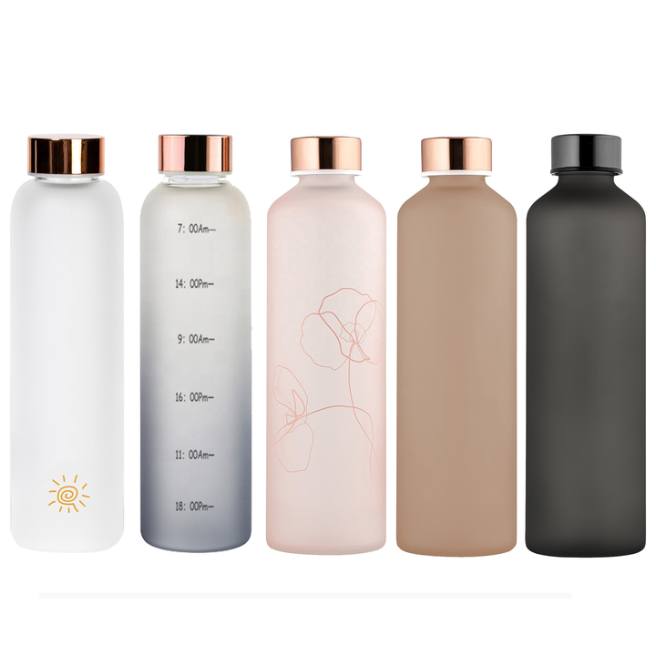 32OZ Gradient Colorful High Borosilicate Frosted Glass Water Bottle With Time Marker