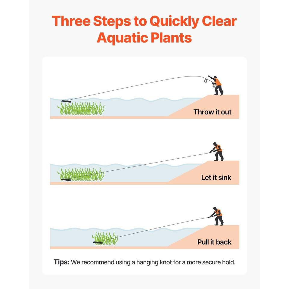 Rastrillo para Malezas Acuáticas Ligero de 32 pies, Cortador de Malezas de Lago de Doble Cara de 6.3 con Cuerda de 30 pies, No Requiere Montaje