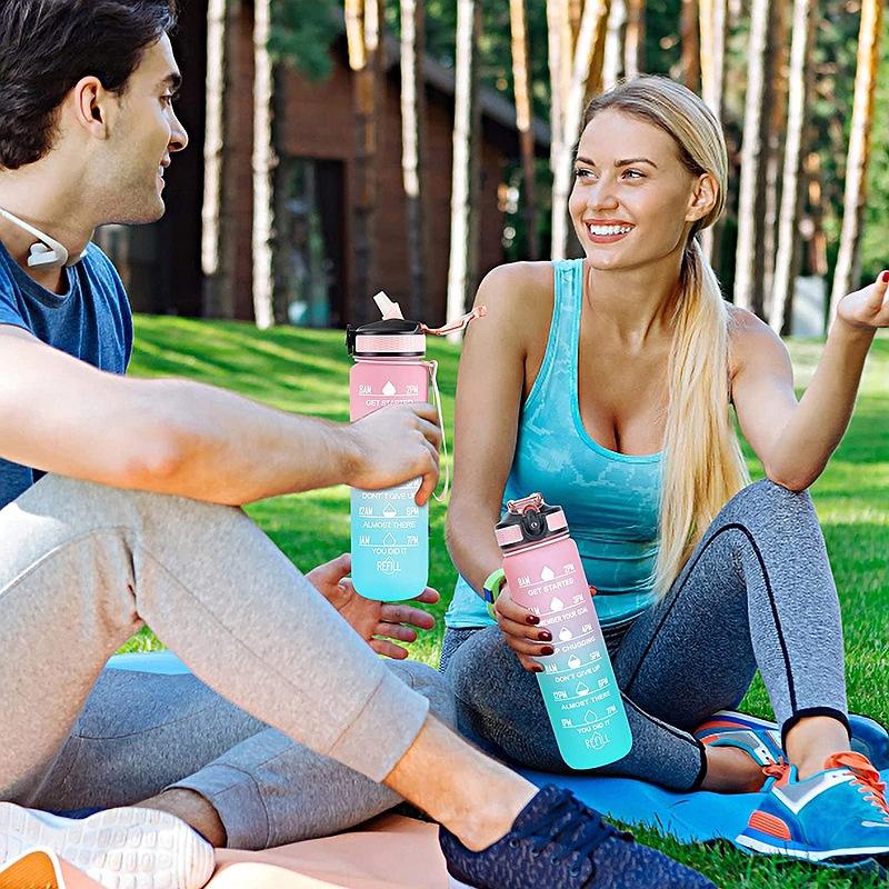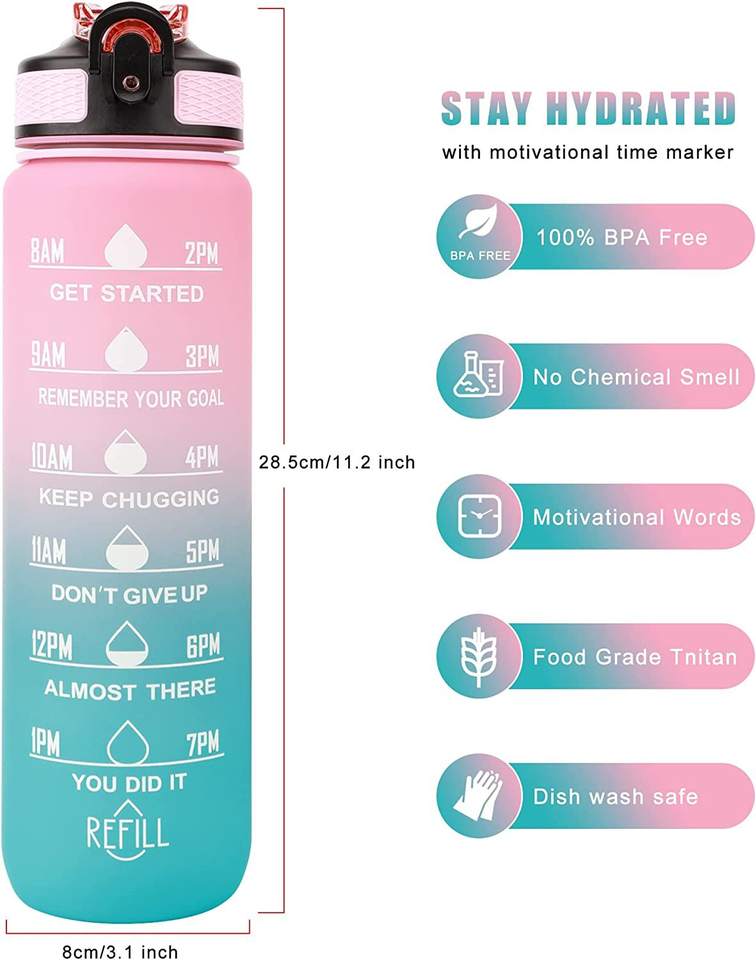 Botella Deportiva de 32oz con Gradiente de Color y Marcador de Tiempo, Botella de Agua Motivacional de Gran Capacidad