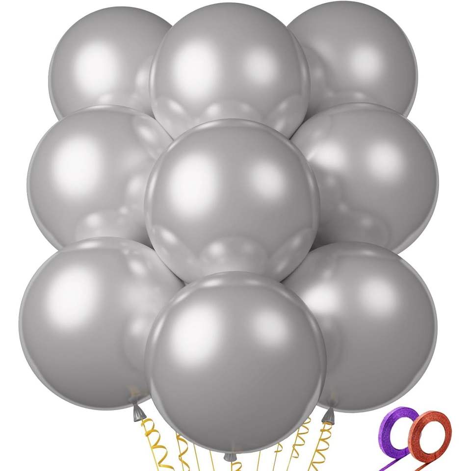 32 Globos Redondos de Látex Plateados de 18 Pulgadas para Decoraciones de Cumpleaños y Bodas