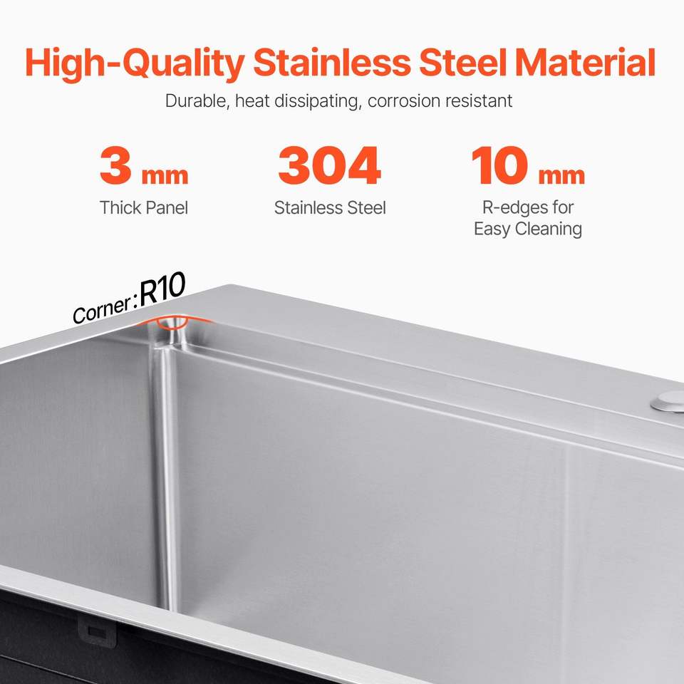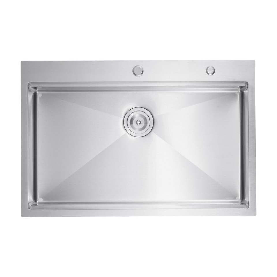 Fregadero de cocina de acero inoxidable 304 de 33 pulgadas, montaje superior, cuenco único, estilo rústico con borde, diseño multiusos empotrable