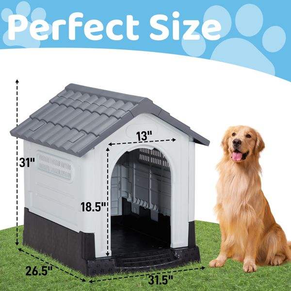 33-Inch Large Plastic Dog House with Air Vents & Elevated Floor Indoor Outdoor Insulated Pet House Water Resistant Furniture