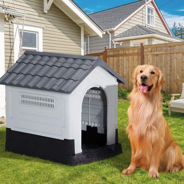 Casa para Mascotas Aislada de Plástico de 33 Pulgadas con Piso Elevado, para Interiores y Exteriores, con Ventilaciones y Características Resistentes al Agua